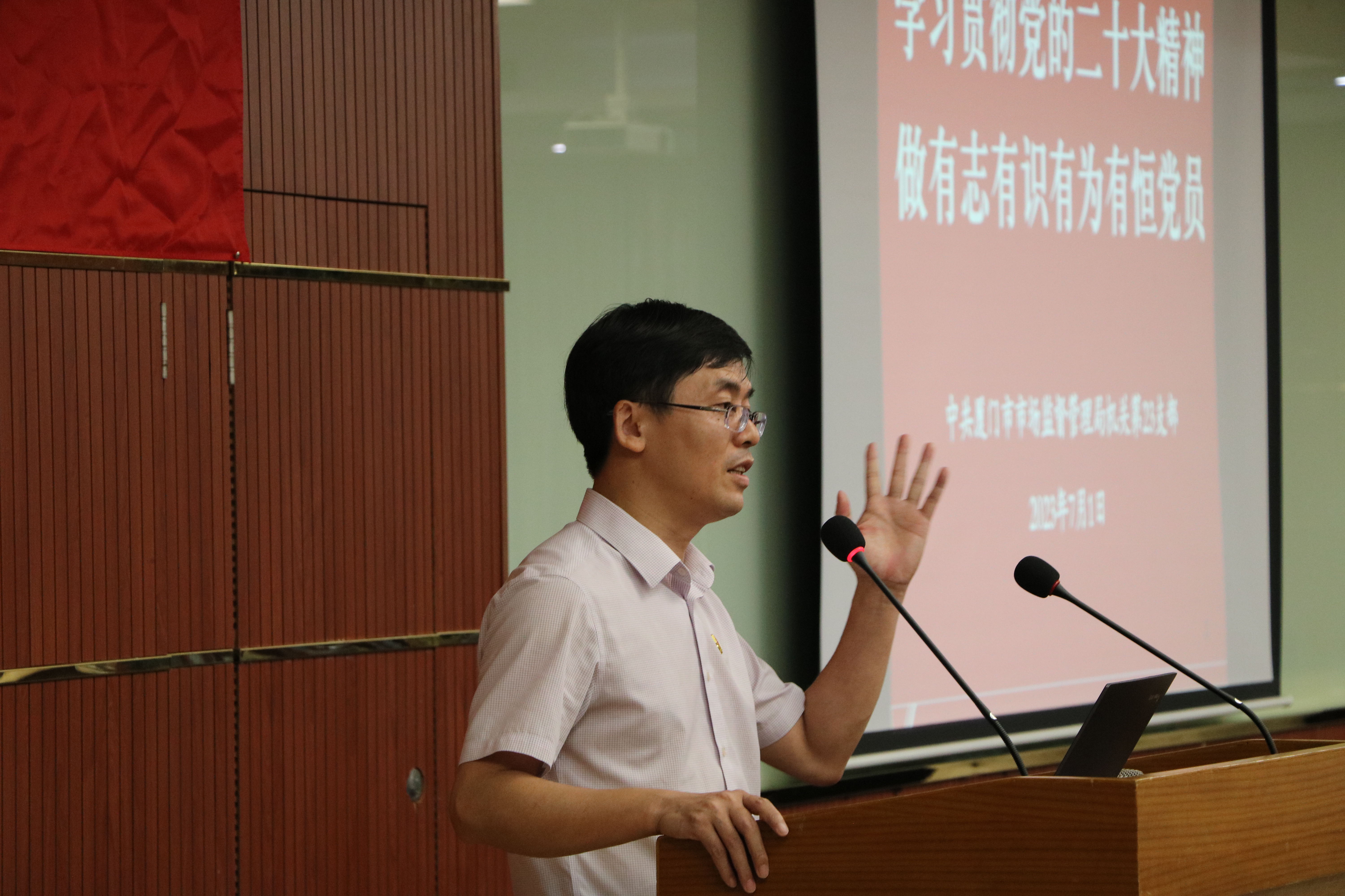在這次聯(lián)建共建中,中共廈門市市場(chǎng)監(jiān)督管理局機(jī)關(guān)第二十三支部何清杭書(shū)記帶來(lái)了一堂《學(xué)習(xí)貫徹黨的二十大精神,做有志有識(shí)有為有恒黨員》的主題黨課。授課前,何書(shū)記作為領(lǐng)誓員,脫稿帶領(lǐng)大家一起重溫入黨誓詞,全體黨員面對(duì)鮮紅的黨旗,莊嚴(yán)地舉起右拳,鏗鏘有力、擲地有聲地宣讀誓詞。