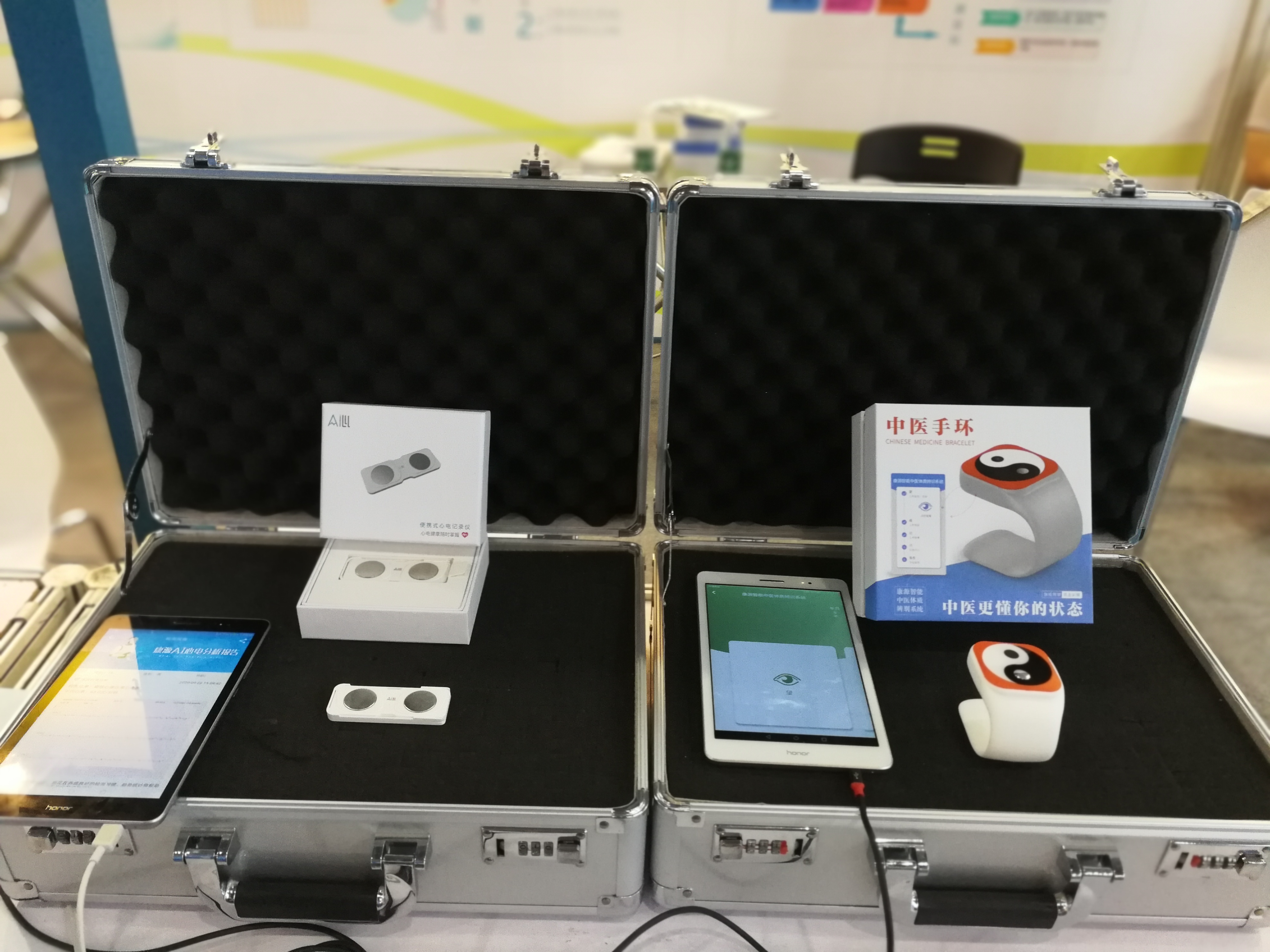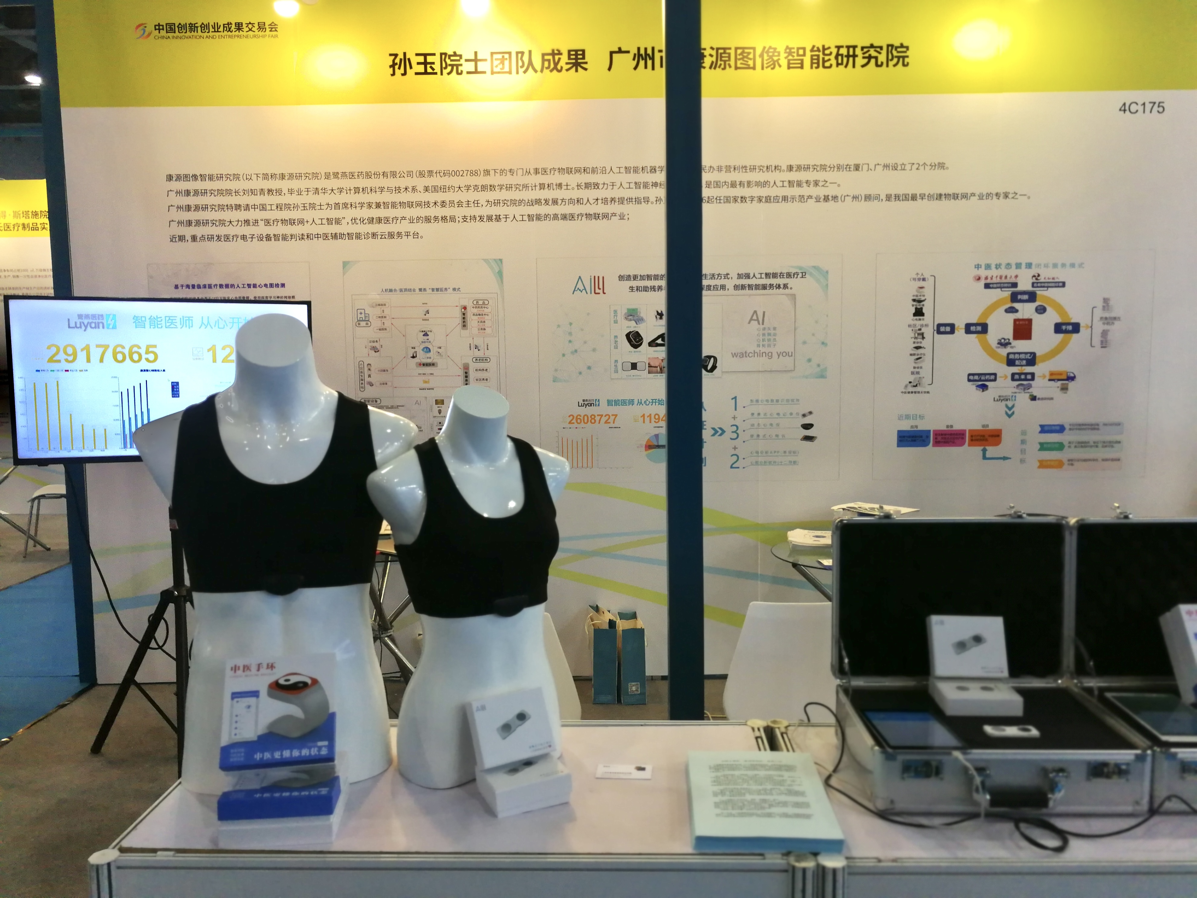 在本屆成果交易會上,康源研究院團隊展出了自主研發的人工智能便攜式心電系列產品,包括便攜式心電記錄儀、動態心電儀和中醫手環等,并現場演示了心電檢測、心電判讀、中醫狀態管理閉環式服務模式。
